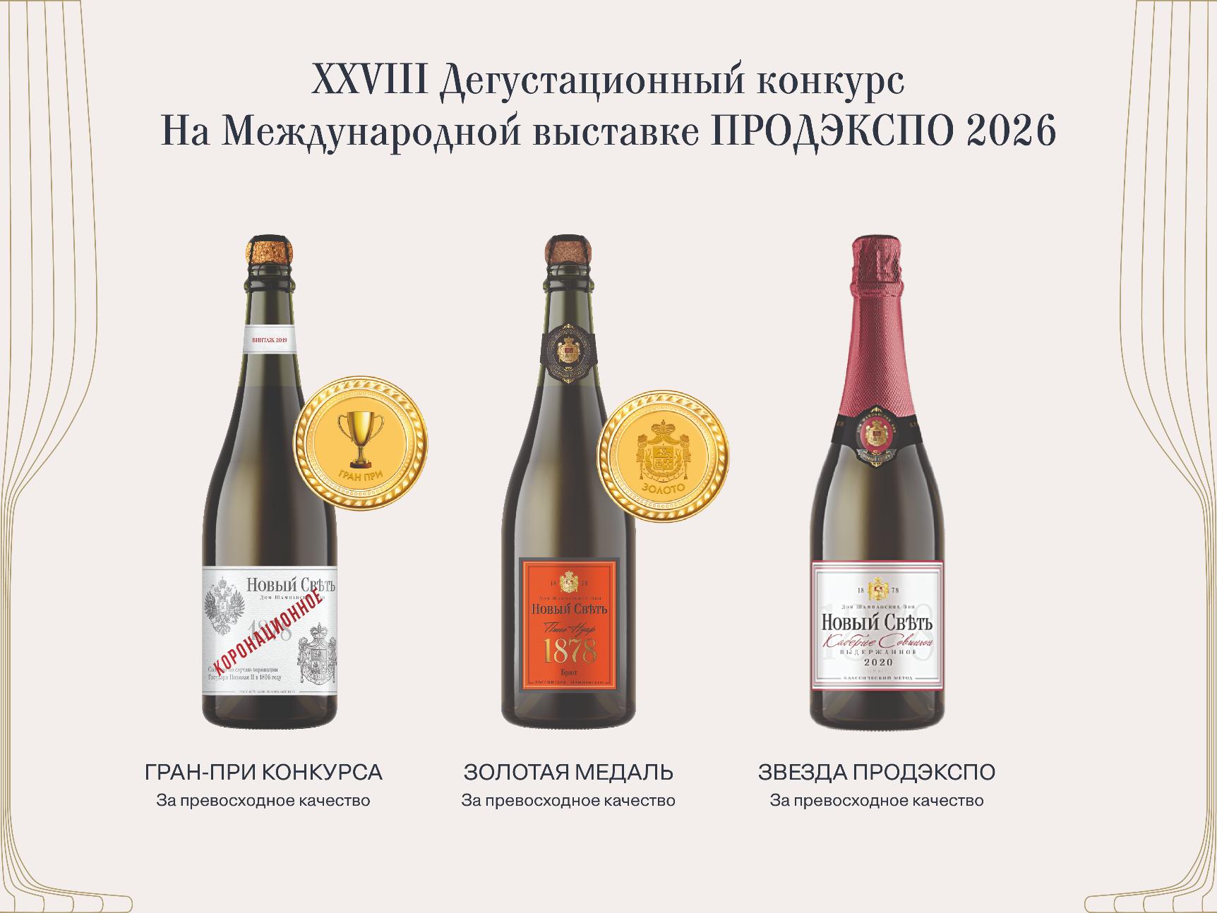 В рамках форума традиционно проводится два конкурса. В одном из них, организованном ООО “Столичный стиль”, российское шампанское “Новый Свет”, удостоилось наивысших наград: